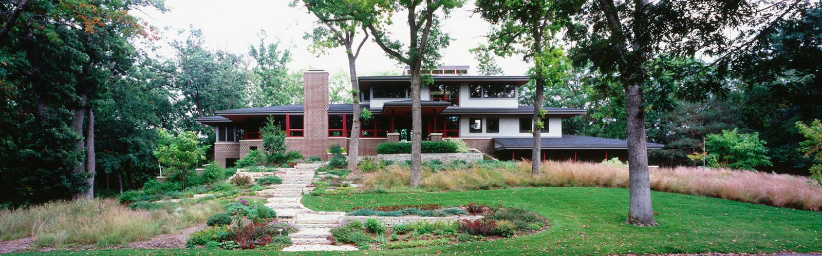 Set into its hilltop site, the house is organized by level and solar orientation. On the main level, the public spaces for cooking, entertaining and dining are separated from the private sleeping, bathing and study areas by an open entryway. The upper level, with its core lit from above, accommodates a bathroom, bedrooms and a study. The lower level, carved like a trench into the site, is open at its ends for garage and entertainment spaces. The functional rooms in this open floor plan are defined by ceiling articulation, window placement and furniture.